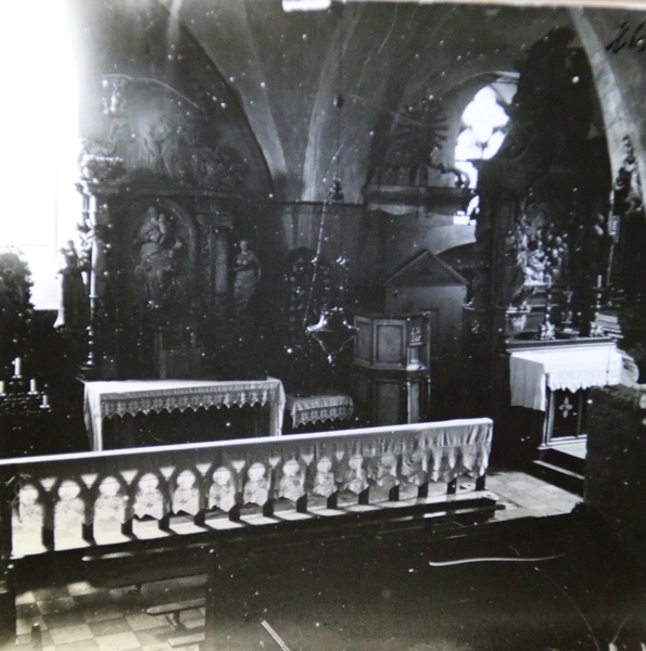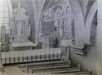 Zur Zeit der Nutzung der Alten Kirche als Pfarrkirche (bis 1912) stand dort, wo heute die betenden Engel knien, der Marienaltar (jetzt in der Neuen Kirche), welcher als Hochaltar genutzt wurde. Der heutige Hochaltar aus der Neuen Kirche stand rechts als Seitenaltar, dazwischen befand sich die Kanzel. Der sich heute ebenfalls in der Neuen Kirche befindliche Taufstein stand unter der Grafenempore auf der Westseite der Kirche. Die beiden betenden Engel befanden sich zu der Zeit an der Rückseite des Mittelpfeilers. Zum Umzug in die Neuen Kirche wurden sie vergraben und erst später erhielten sie ihren jetzigen Platz. Auch die Sakristei befand sich im Kirchenraum, sie war hinter dem Seitenaltar und konnte durch einen schmalen Durchgang erreicht werden.
