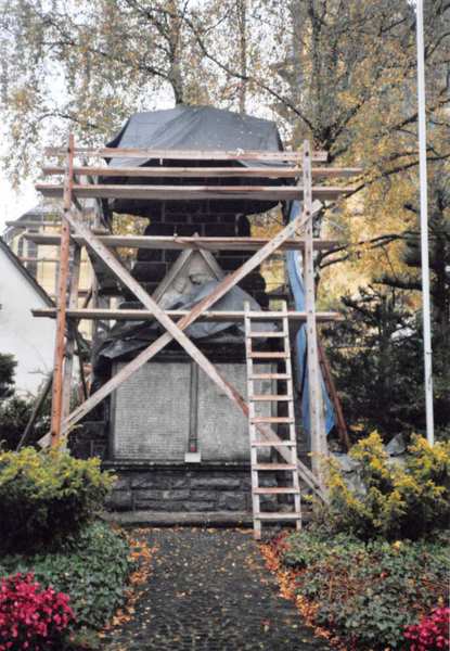 Als man nach dem 2. Weltkrieg (01.09.1939 – 08.05.1945) wieder zahlreiche Soldaten als Opfer (24 Gefallene und 16 Vermisste) zu beklagen hatte, musste die Vorderfront des Ehrenmals neu gestaltet werden. Um Platz für eine zweite Tafel zu bekommen entfernte man den wasserspeienden Löwenkopf. So entstand eine Fläche bis zum Sockel. Steinmetzmeister Josef Grothe fertigte neue Tafeln in erhabener Schrift mit den vermissten und gefallenen Soldaten beider Weltkriege.