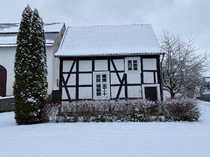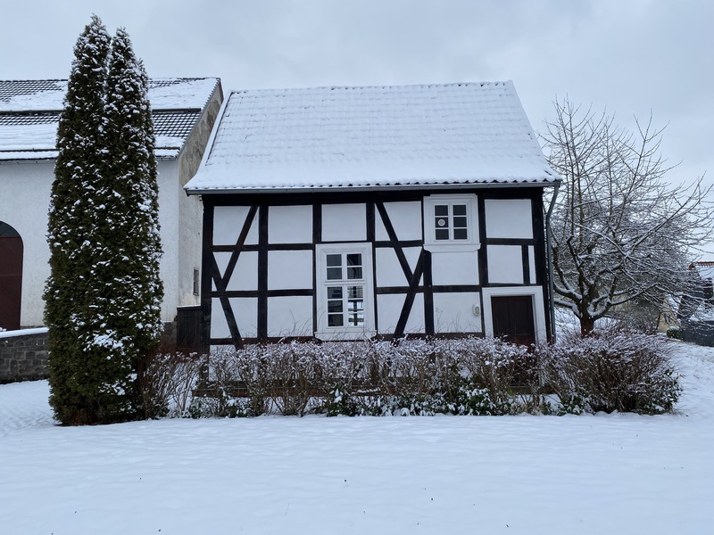 Das Gebäude wurde in seiner Doppelfunktion als Schulhaus und Synagoge einfach, jedoch zweigeschossig in der damals typischen Bautradition des Dorfes im Fachwerkstil errichtet; zweigeschossig, denn beim jüdischen Gottesdienst herrschte Geschlechtertrennung. Männer beteten unten, für Frauen war die Empore vorgesehen. Dieses hatte aber nichts mit einer Benachteiligung zu tun. Frauen sind von bestimmten religiösen Pflichten freigestellt. Zu diesen gehört auch das dreimalige Gebet am Tag. Durch die Empore mit ihrem Aufgang direkt hinter der Eingangstür, konnten sie, ohne die Männer beim Beten zu stören, kommen und gehen, wann immer sie mochten.